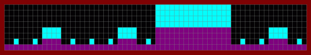 This map represents 16 measures of music, with each horizontal increment marking one beat. Each light blue region represents a group of notes that, on the whole, sound higher than the surrounding notes (their average pitch is higher).