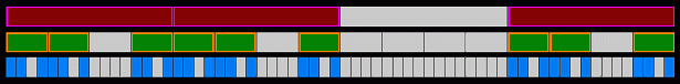 Each of the small blue blocks represents one measure (4 beats) of music. The green and red blocks represent 4 and 16 measures, respectively. All measures of the same color contain exactly the same, ordered set of notes. Each gray block of any size contains a set of notes that is different from the colored set to its right and left.